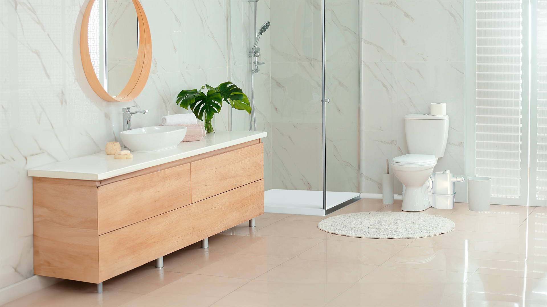 Richten Sie sich ganz in Ihrem Stil eine Wellnessoase ein. Mit der SOLOLIFT2 von Grundfos gestalten Sie das neue Badezimmer genau nach Ihrer Vorstellung.